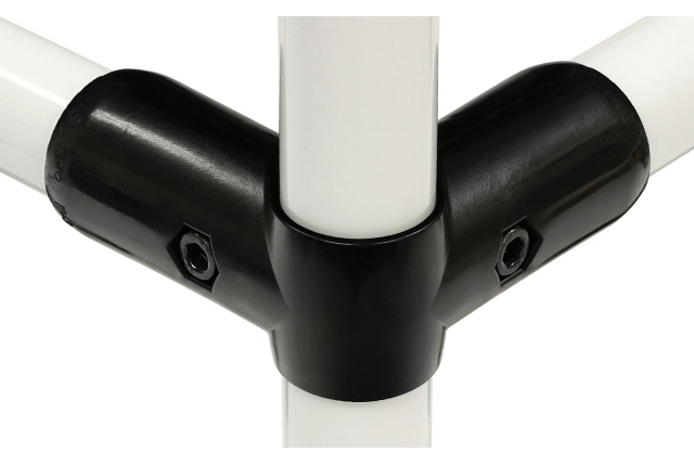 ・ボルトとナットで締め付けて固定するプラスチック製のジョイントです。(屋内用) ・中間コーナーに使用するジョイントです。 ・組み立て・分解が自由自在です。 ・組み立てには、六角棒スパナ(対辺5mm)が必要です。 ・スペーシア製の六角棒スパナ(JB-050)又はラチェットレンチ(JB-RH)をご利用下さい。 ・ボルトとナットを締め付けるときは、過度の締付けや衝撃によりジョイントが割れて飛散する場合がありますので、ご注意下さい。 ・ボルト、ナットは付属しています。 ・色は2色から選べます。 |